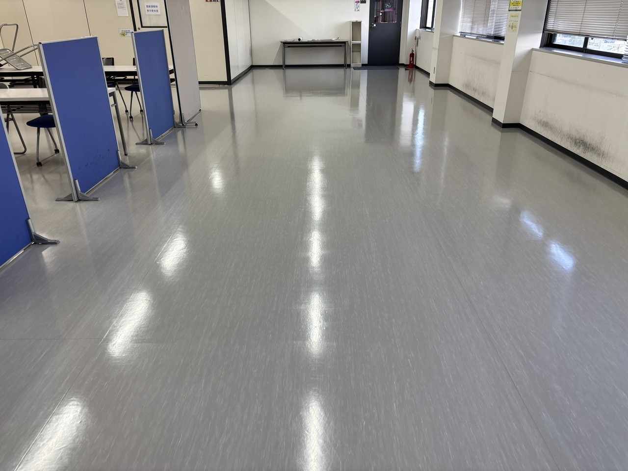 ワックスがかなり傷められていましたが床面を二度洗いしワックスを塗布しなおすことで、きれいな状態に戻すことができました