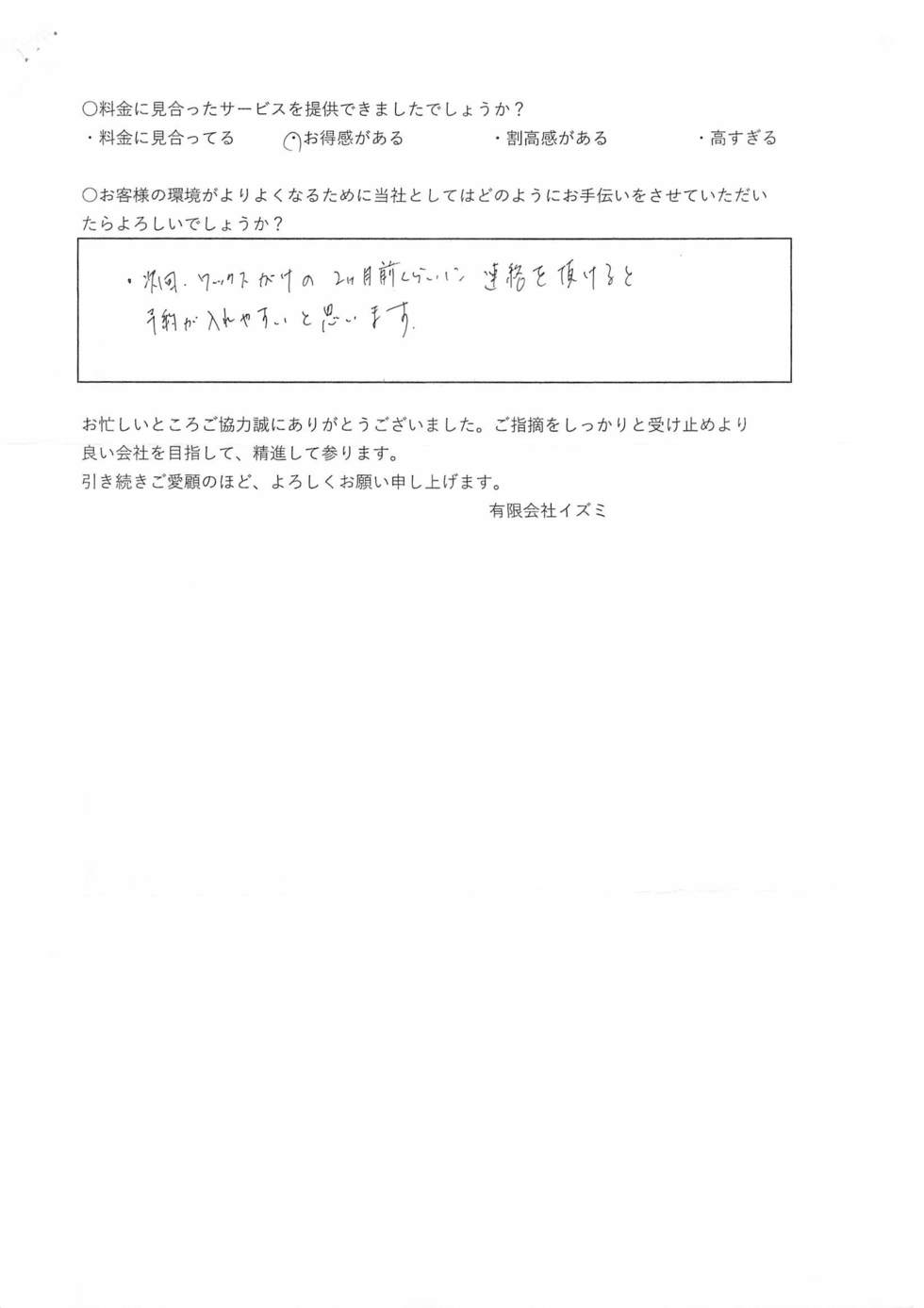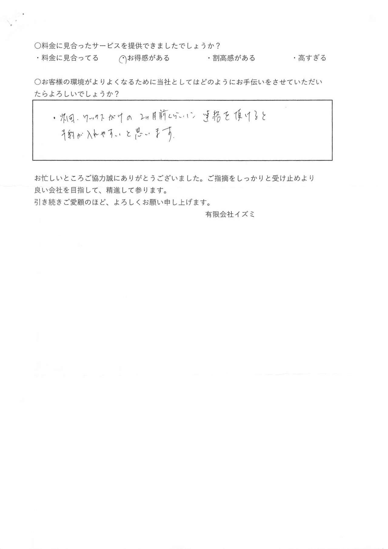 イズミさんに変わってからは毎回きちんときれいになっているので安心しています。